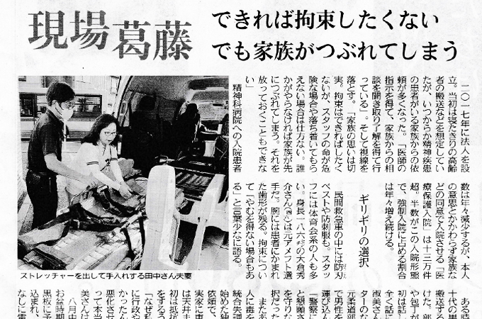 2023年8月28日付けの東京新聞に当法人の精神疾患患者搬送の最前線が掲載されました。