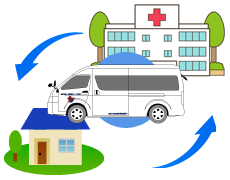 病院での通院待ち時間の間、車内で処置を行うことも可能です。ご希望により、看護師・救命士の同乗も可能です